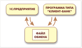 Обмен данными между конфигурацией и программой типа "Клиент банка" осуществляется через промежуточное хранилище информации, в качестве которого используется файл обмена специального формата.