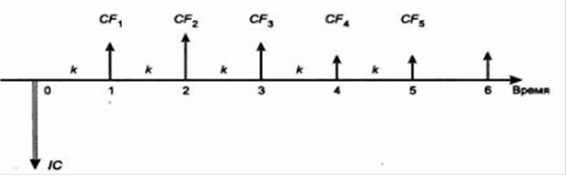 В общем случае показатель доходности можно трактовать как годовую процентную ставку, уравновешивающую исходную инвестицию в актив с генерируемым им денежным (возвратным) потоком. Это эффективная годовая процентная ставка, характеризующая экономическую целесообразность данной финансовой операции.