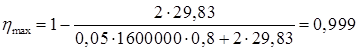 Определяем оптимальный коэффициент нагрузки , соответствующий максимальному значению КПД.