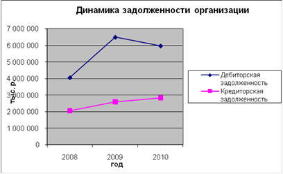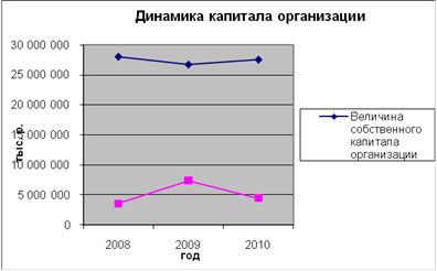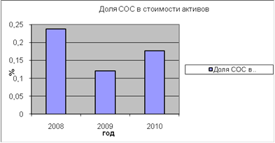 В 2009 году возросла общая стоимость активов организации, внеоборотных средств и материальных оборотных средств, что связано с ввод в эксплуатацию объектов незавершенного строительства и модернизации основных средств. В 2010 году общая стоимость активов падает за счет сокращения стоимости оборотных средств.