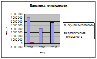 · коэффициент текущей ликвидности - характеризует способность предприятия выполнять краткосрочные обязательства за счет всех текущих активов, рекомендуемое значение от 1,7 до 2. Находится в норме только в 2009 г. В 2008 превышает норму из-за отсутствия займов и кредитов, в 2010 - из-за отсутствия краткосрочной дебиторской задолженности и свободных денежных средств.
