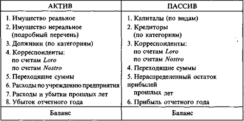 Первым российским ученым, обратившим внимание на необходимость определенной упорядоченности отчета и отчетности, был А. К. Рошаховский. Он опроверг бытовавшее в России в начале XX в. мнение о невозможности и нецелесообразности структурирования и унификации отчетности и предложил типовую форму баланса (табл. 1).