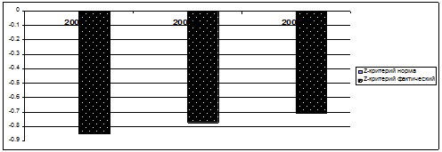 Как видно из таблицы на протяжении всего исследуемого периода Z<0, то есть вероятность банкротства ОАО «РЖД» достаточно низкая.