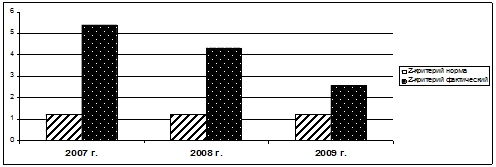 Z > 0,42 - у ОАО «РЖД» min степень банкротства 10%.