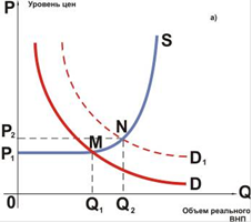 Если экономика находится на отрезке MN кривой предложения S, то это ведет к росту цен, представляющему инфляцию спроса.