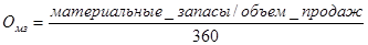 Оборачиваемость материальных запасов в днях - отношение суммы материальных запасов к однодневному обороту по реализации: