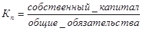 Для измерения платежеспособности используют специальный коэффициент платежеспособности, показывающий долю собственного (акционерного) каптала предприятия в его общих обязательствах: