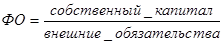 При определении платежеспособности всегда необходимо анализировать финансовую структуру источников средств, т.е. решать вопросы о том, из каких средств финансируются активы. Показатель, отражающий состояние финансовых средств предприятия, получил название финансового отношения (ФО) и определяется путем деления величины собственного капитала на размер внешних обязательств: