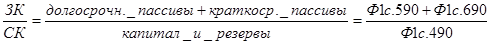 показывает, сколько заемного капитала привлечено на 1 рубль собственных источников финансирования. Рассчитывается по формуле: