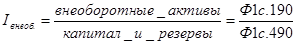 - показывает, какая часть собственного капитала направлена на финансирование внеоборотных активов. Рассчитывается по формуле: