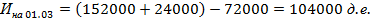 Остатки на 01.03 |
