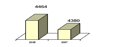 Увеличившись к концу 2006г. до 4 454 тыс. руб., товарооборот снизился до 4380 тыс. руб. в 2007 году. В целом товарооборот за исследуемый период увеличился на 1,9 млн. руб., или на 63%.