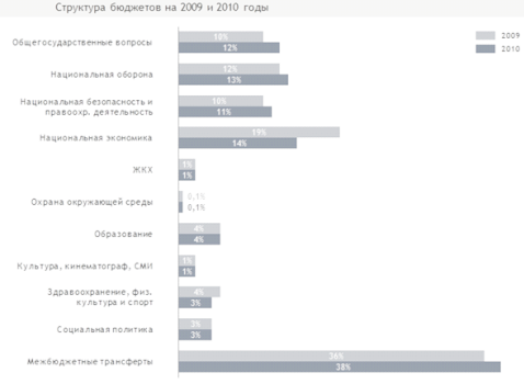 Структура расходов федерального бюджета утверждена только на 2010 год. Приоритетными направлениями расходования бюджетных средств являются выполнение социальных обязательств, а также создание условий для посткризисного восстановления и развития экономики.