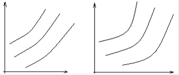 Сравнение портфелей, оценки которых лежат на разных кривых, свидетельствуют, что любой портфель с оценкой на одной кривой предпочтительнее портфеля с оценкой на другой кривой. Кривые безразличия никогда не пересекаются. Исходя из отношения инвестора к риску и доходности и их оценок инвестор может иметь бесконечное число кривых безразличия. Характер расположения кривых означает индивидуальную для инвестора взаимозаменяемость доходности и риска. Крутые кривые безразличия означают более осторожного инвестора, чем пологие кривые (рис. 2, рис. 3).