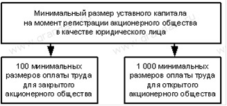 Установленные минимальные размеры уставного капитала рассчитывают исходя из суммы минимального размера оплаты труда, установленного федеральным законом на дату государственной регистрации акционерного общества (рис. 2).